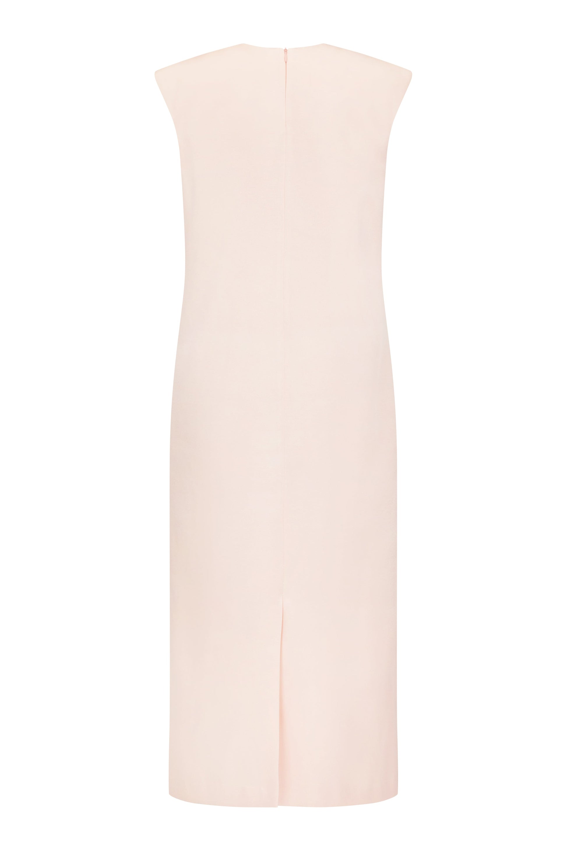 A relaxed silhouette crafted in a sculptural pink satin, cut to mid calf. Subtle shoulder pads lend quiet structure, while discreet pockets and full lining add functionality. Finished with a back zip closure and centre back slit for ease of movement.