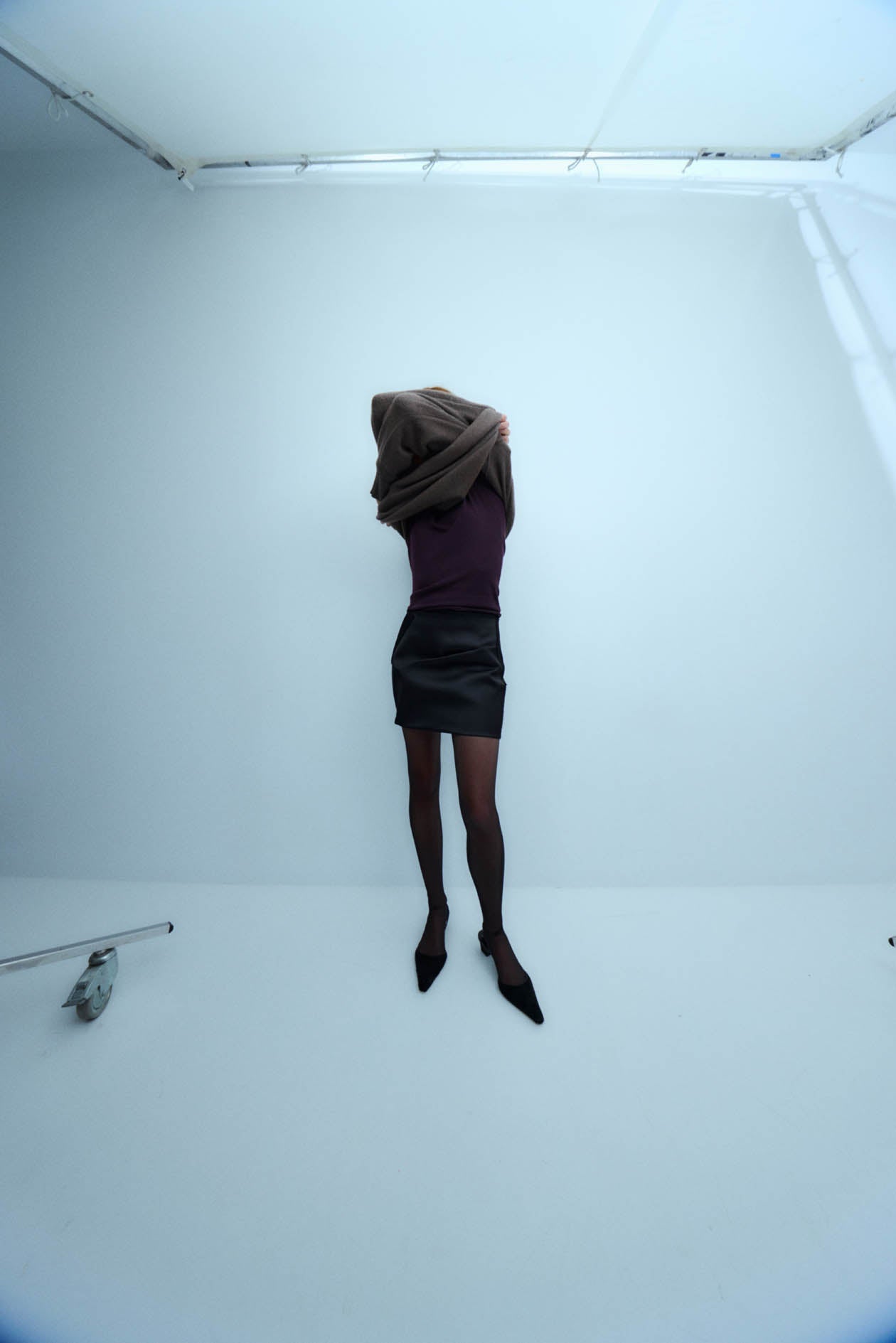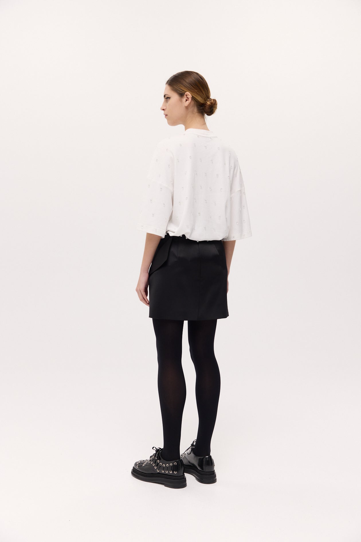 Cut in signature bonded satin, the Fold Mini features raw edge detailing and sculptural tucking.