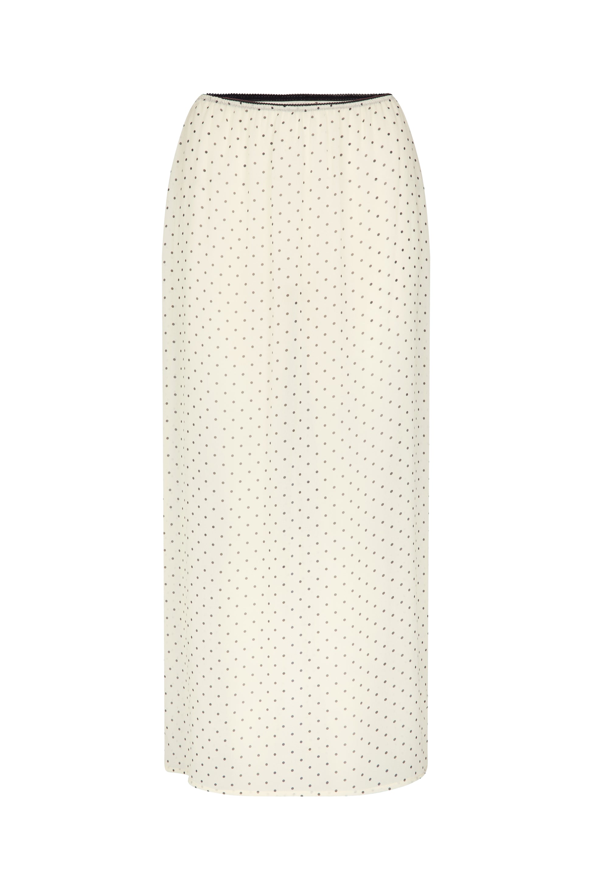 SKI01533PCRM Colour: Cream and black polka dot Material: Silk chiffon Composition: 100% Silk Care: Dry-clean only